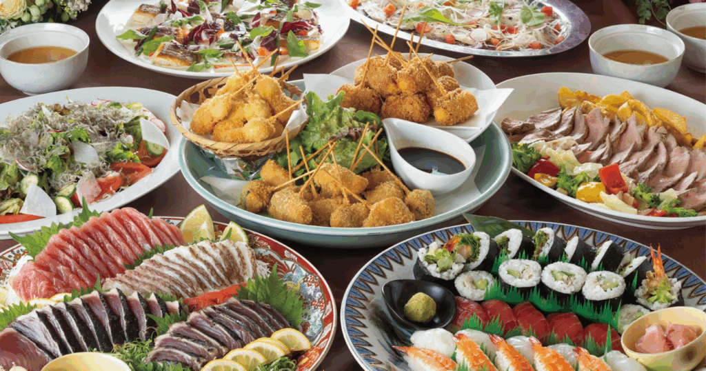 海月うまいもん市場では海月館グループ各施設のご当地名産品を活かした料理を販売しています。